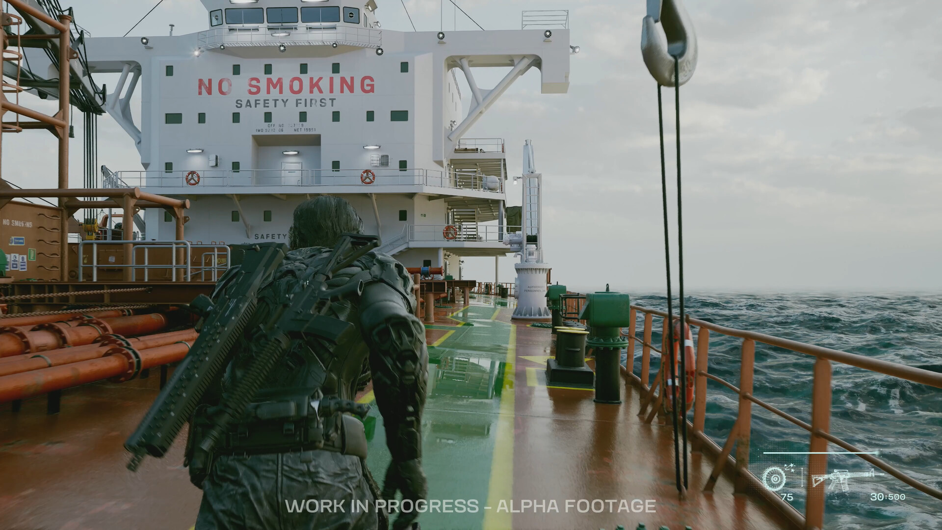 Demo z Gamescomu opravdu mělo spíše podobu techdema. Ve futursitické vojenské kombinéze bezejmenného drsného vojáka nás vývojáři z Motion Blur vypustili do tajemné vojenské základny, vybavili nás spoustou zbraní a výbušnin a nechali nás zkoušet si tichá zabití ze zálohy i explozivní akci.