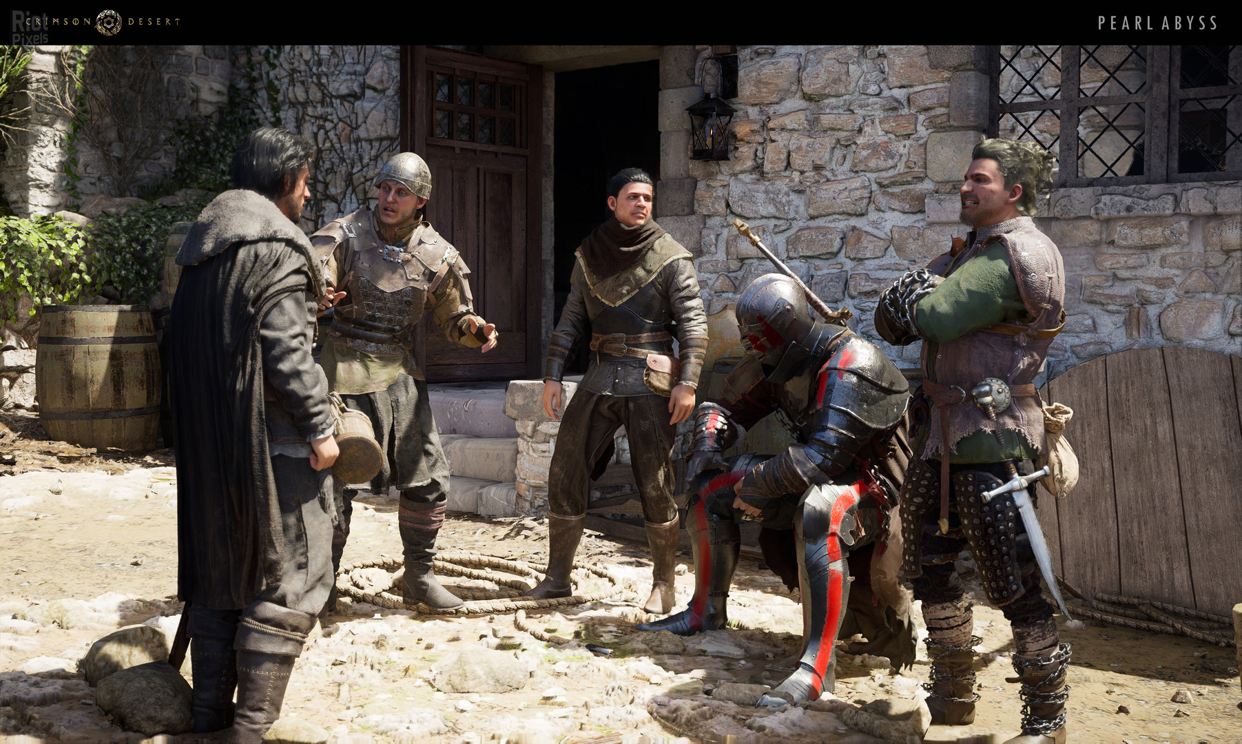 Na závěr následoval výšlap na hrad a souboj s Cassiem Mortonem, po zuby ozbrojeným protivníkem s palcátem a štítem. Jeho zběsilé útoky působily jako krocení rozzuřeného býka, a to ani Kliff není žádné ořezávátko. Tehdy přišel čas na svalovou paměť ze vztyčování praporů – respektive bylo nutné uhýbat tak dlouho, dokud se Cassius nevyčerpá, a pak ho po hlavě majznout popadaným sloupovím. Podobně taktických střetů, kde bude nutné kreativně využívat prvky prostředí, má být v Crimson Desert celá řada.