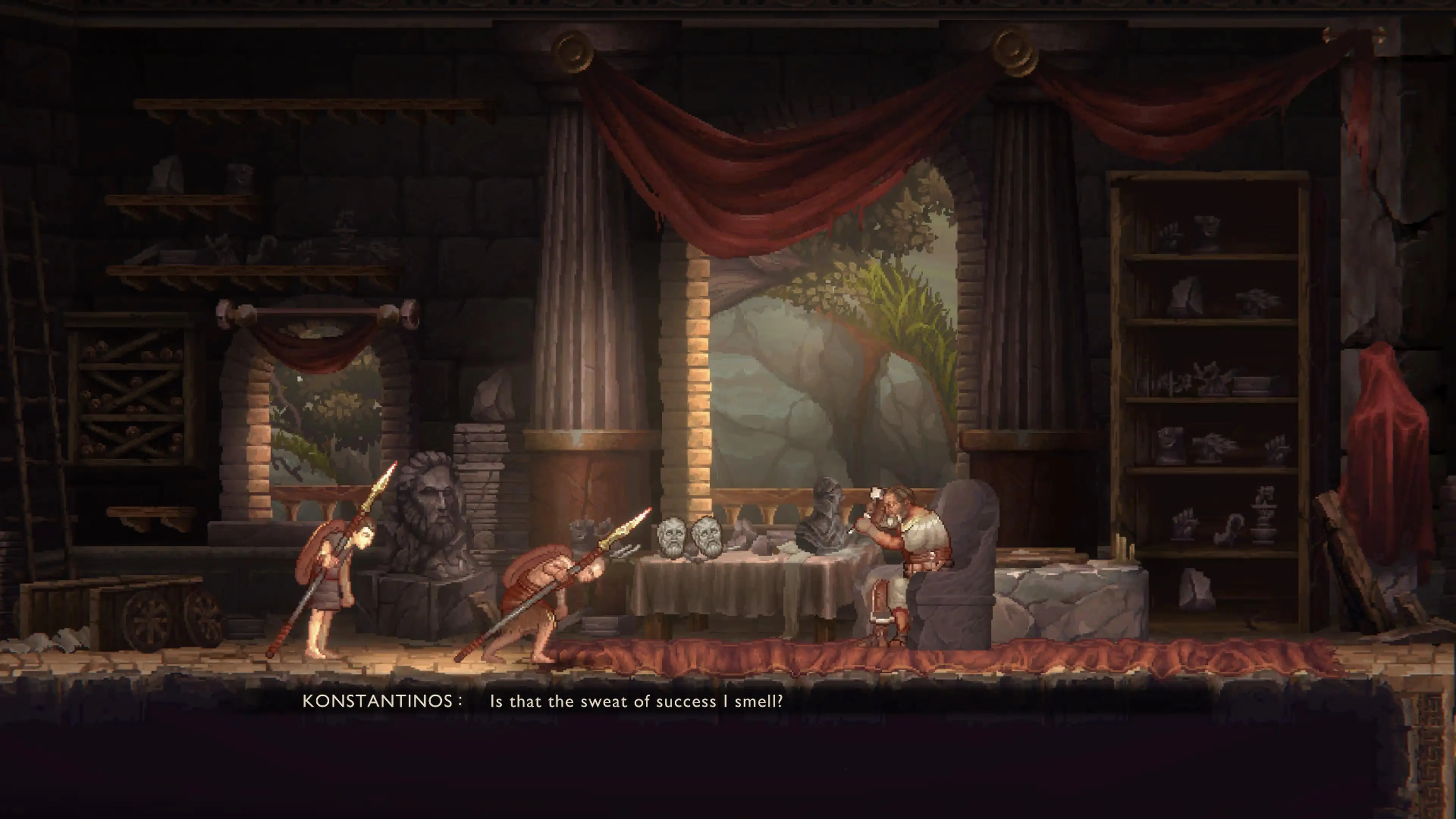Rámcová rovina nespolehlivého vypravěče přitom patří k tomu nejlepšímu, co Sons of Sparta nabízejí. Dialogy mezi otcem a dcerou jsou na poměry řeckých božstev příjemně civilní, Kalliopé zpochybňuje otcovy vzpomínky, opravuje jeho přehánění a jemně podkopává patos muže jindy drsného jako šmirglpapír. Navíc se dozvíte, kdo ho inspiroval při pojmenovávání Atrea.