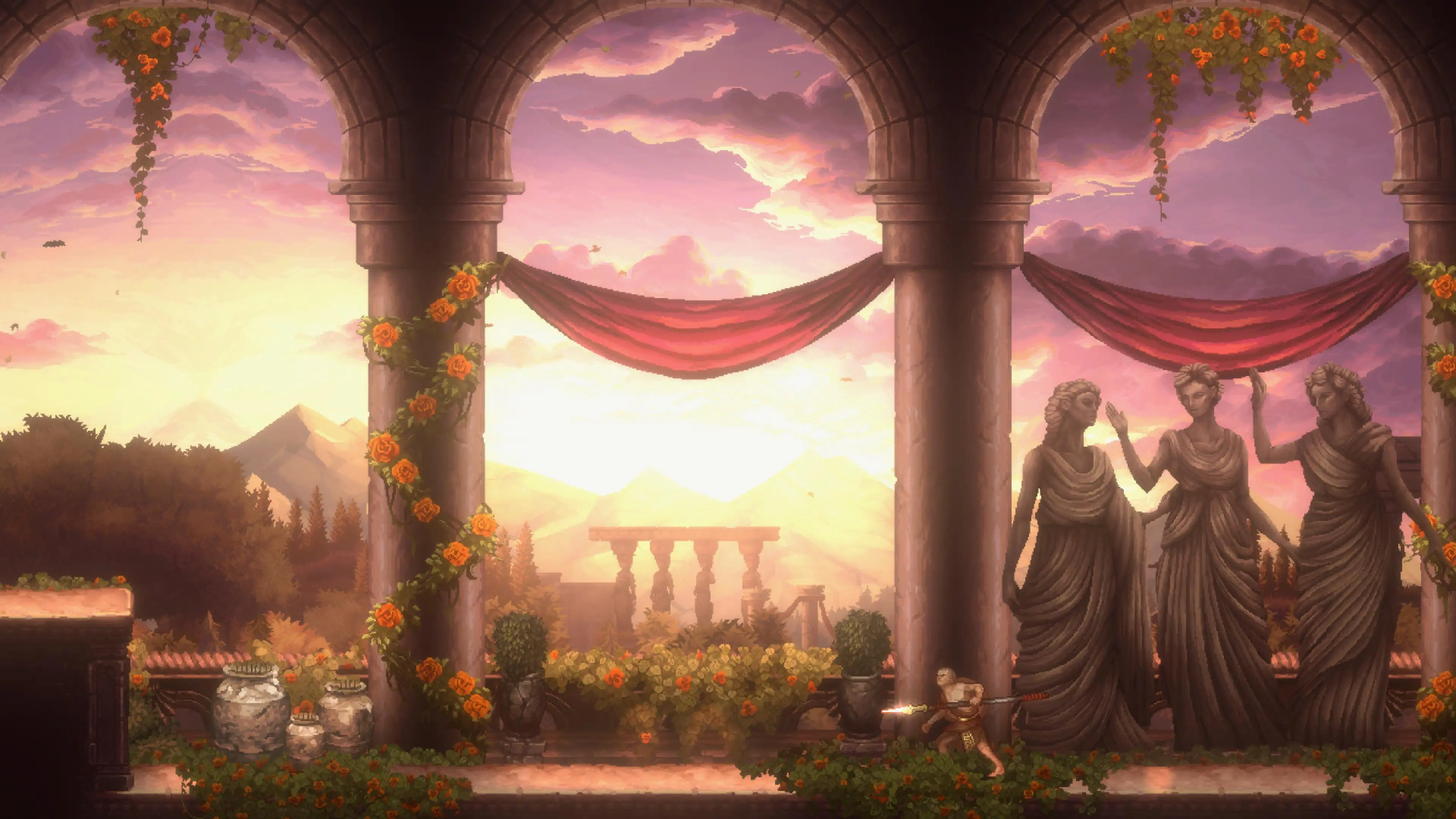 Už zmíněná zvolená rozpixelovaná stylizace je samozřejmě otázkou vkusu a věřím, že si své zastánce najde, mně ovšem evokuje nahnědlé období her kolem roku 2010 a mobilních titulů z téže éry. Obzvlášť postavičky působí jednoduše směšně a opět se mi dere na mysl jiná metroidvanie, která se s podobným přístupem popasovala lépe – když podobná estetika tolik fungovala v Blasphemous, proč ne tady?